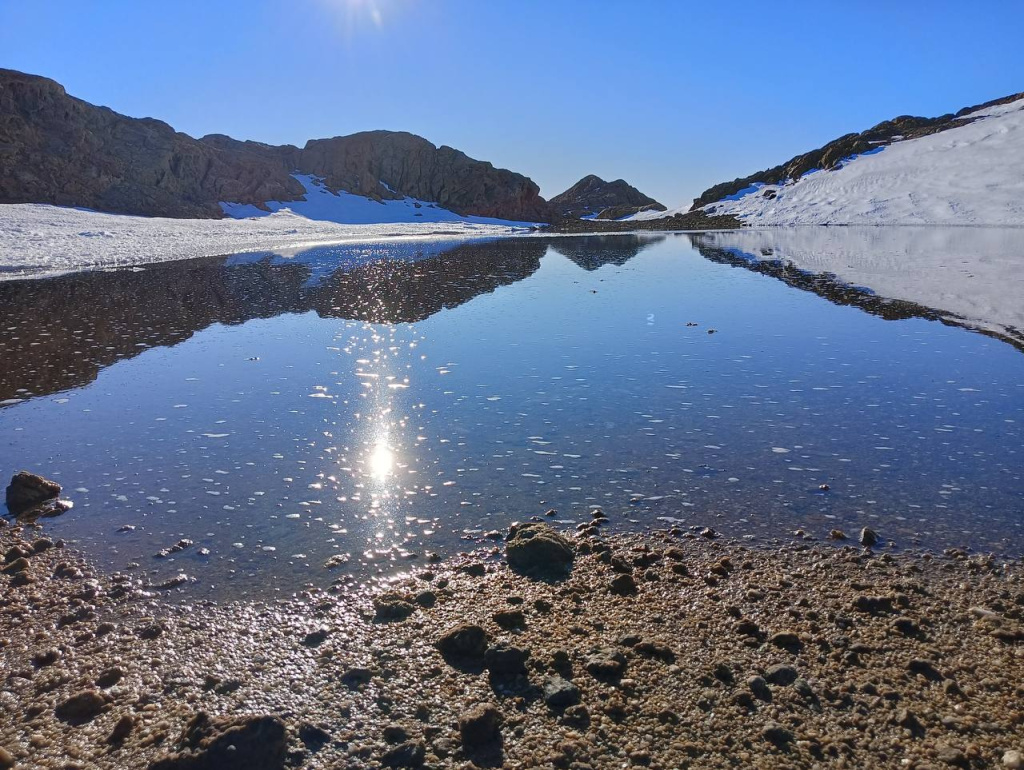 В рамках совместной программы Арктического и антарктического научно-исследовательского института и Института биологии южных морей осуществлена высадка для изучения озер в районе холмов Ларсеманн. Мы обследовали 14 озер, которые практически целиком находятся подо льдом. У озер Длинное и Степпед более половины площади свободно ото льда, в других озерах присутствует только узкая полоска свободной воды у берега. Собрали образцы на содержание в воде биогенов, растворенного кислорода и пробы на состав фитопланктона и хлорофилла а.