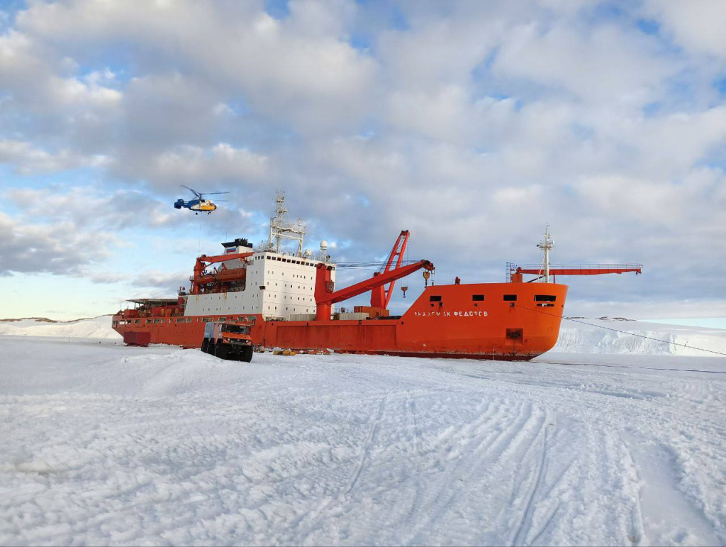 Еще «Академик Федоров» доставил необходимое оборудование и продукты питания для следующей зимовки. В тяжелых Антарктических условиях, где температура воздуха летом около 1 градуса тепла, а большая часть земли покрыта снегом и льдом, доставка грузов и транспортировка людей осуществляется вертолетами.
