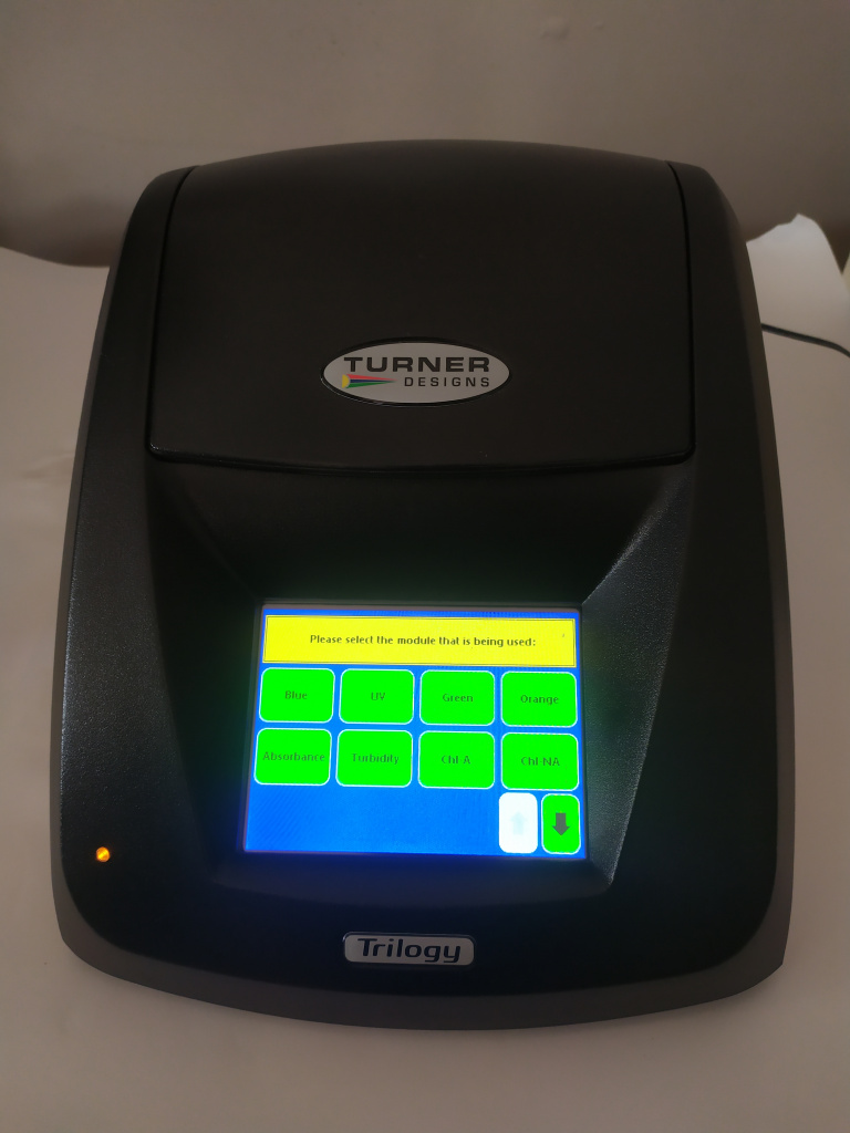 Лабораторный флуорометр Turner Design Trilogy (США) – компактный лабораторный прибор, оснащенный модулем для регистрации флуоресценции хлорофилла а и феофитина а в ацетоновых экстрактах с возможностью последующего расчета абсолютной концентрации этих пигментов. В соответствии с международными протоколами этот прибор наиболее широко используется в практике морской гидробиологии.
